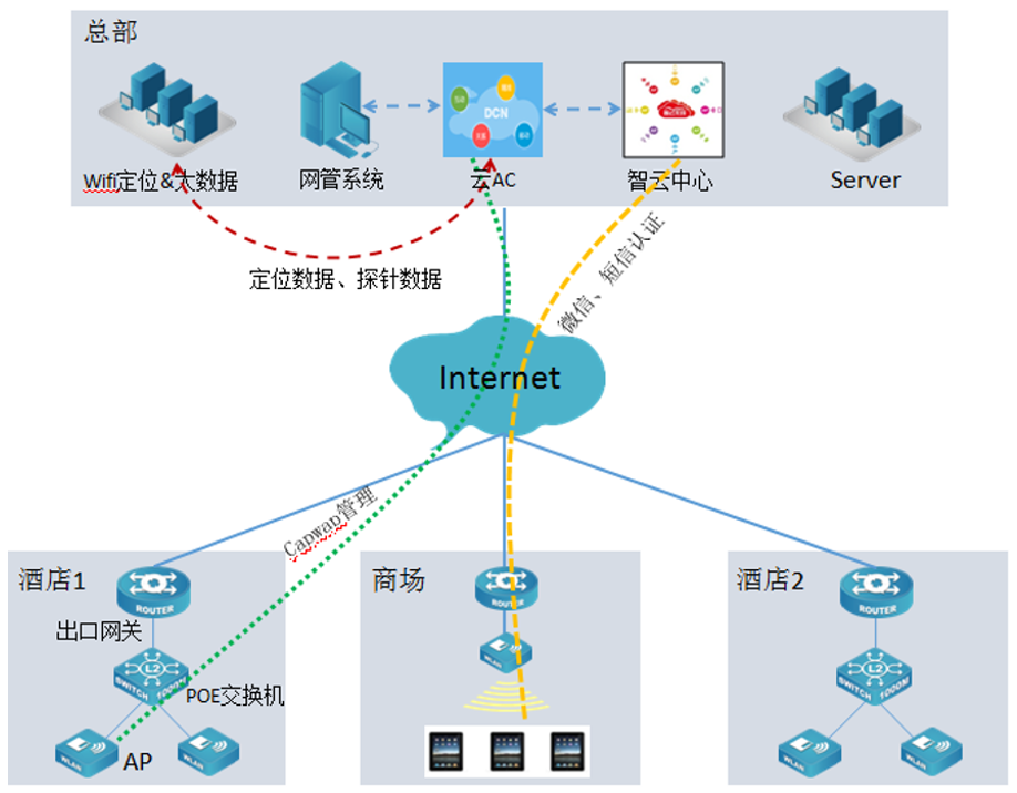 云端集中部署:AC、智云中心、网管,实现统一管理、统一策略、统一平台